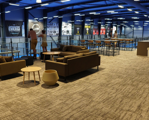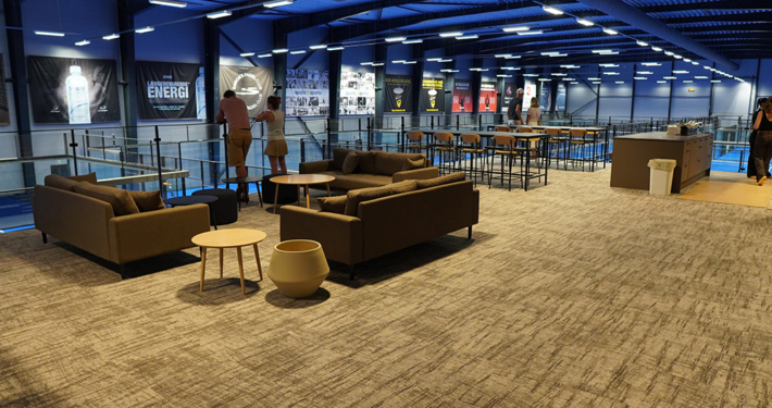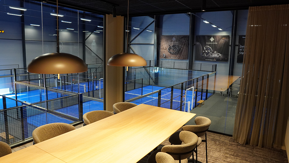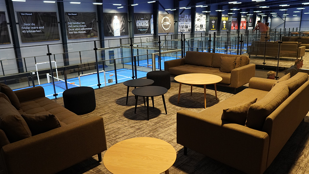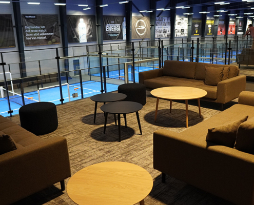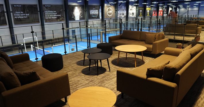 Faciliteterne hos Simons Padelcenter er nøje gennemtænkt, så du også gerne må blive hængende efter kampen, det kan være i loungeområdet med en god kop kaffe eller på 1. sal med udsigt over hele hallen.