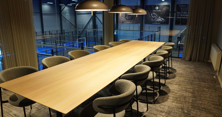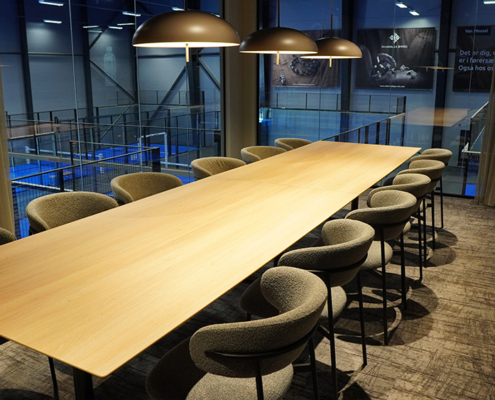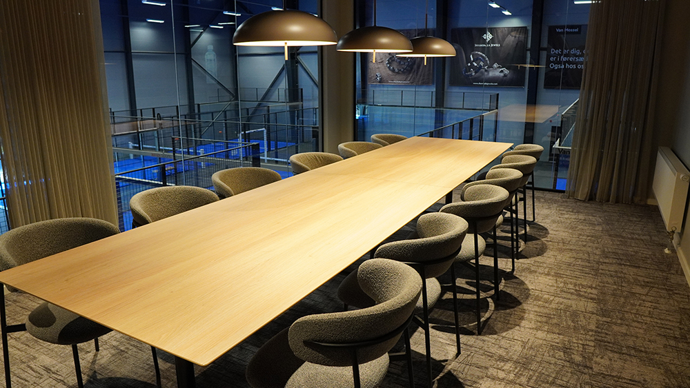 På første sal er der udover simulatorgolf og behandlerrum også professionelle mødelokaler samt et fuldudstyret køkken til afvikling af både private og erhvervsevents.